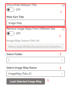 Web part Title – Title to show on the page. - Retrieve Image Maps From Different Site – Toggle to fetch different site’s image maps on current page. By default it will fetch the current site Image Maps.